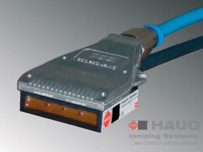 The HAUG mini jet II is a compact static neutralizer. Its air assistance allows positive and negative ions to flow over large distances, neutralizing surface charges.